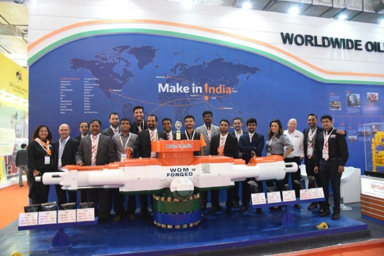 The complete team around the 13-5/8” 10K Ram BOP displayed Receiving the award on behalf of WOM for showcasing the best technology (The BOP SP boosters and the Subsea Intervention System)
